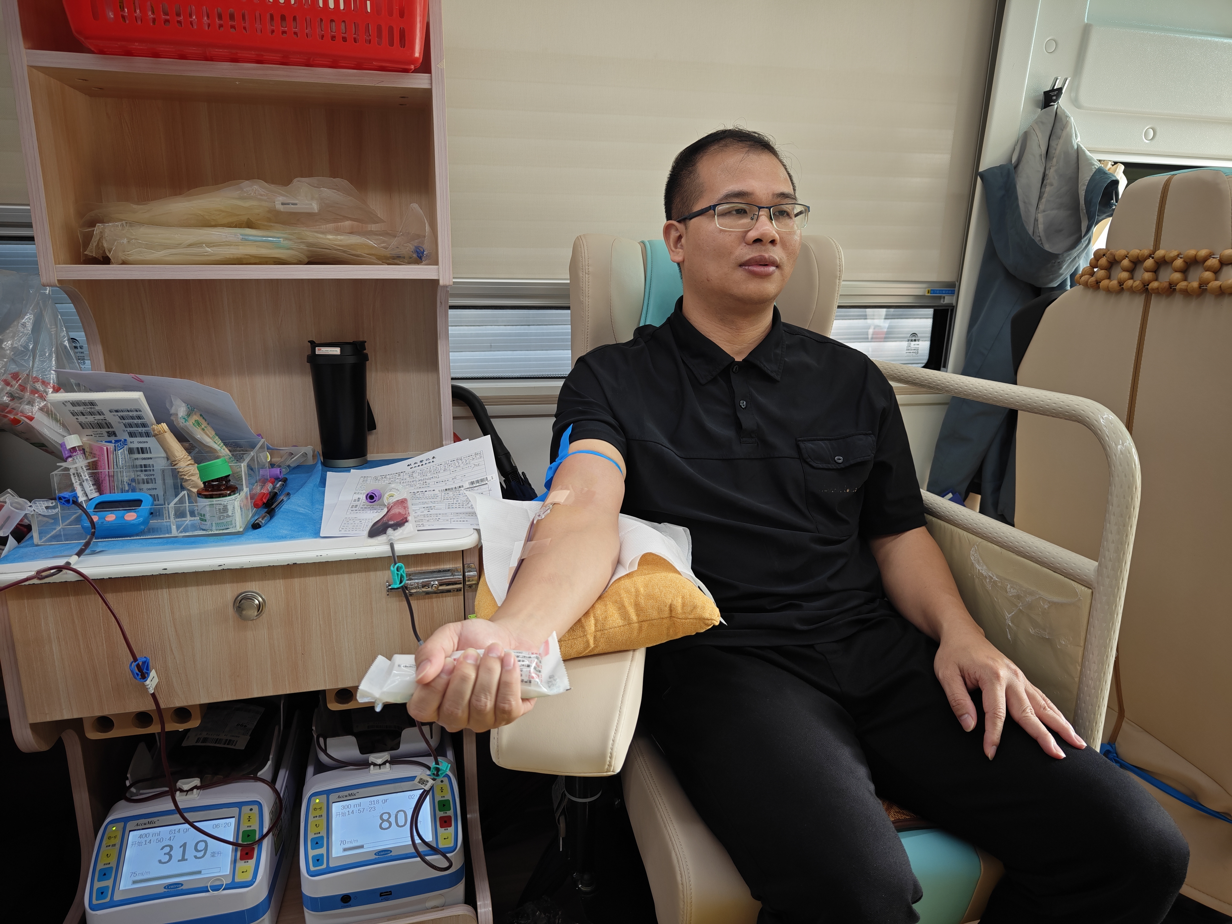 大部分員工都是生平第一次獻(xiàn)血,當(dāng)挽起衣袖露出胳臂時(shí)或多或少還有些緊張,但在醫(yī)護(hù)工作人員的親和的互動溝通中漸漸放松,認(rèn)真配合起來……200cc、300cc、400cc,看著自己殷紅的血液通過輸血管不斷注入血漿袋,一種自豪的感覺油然溢滿全身!