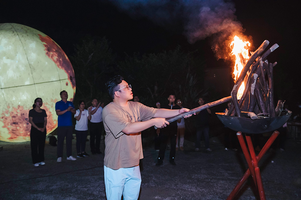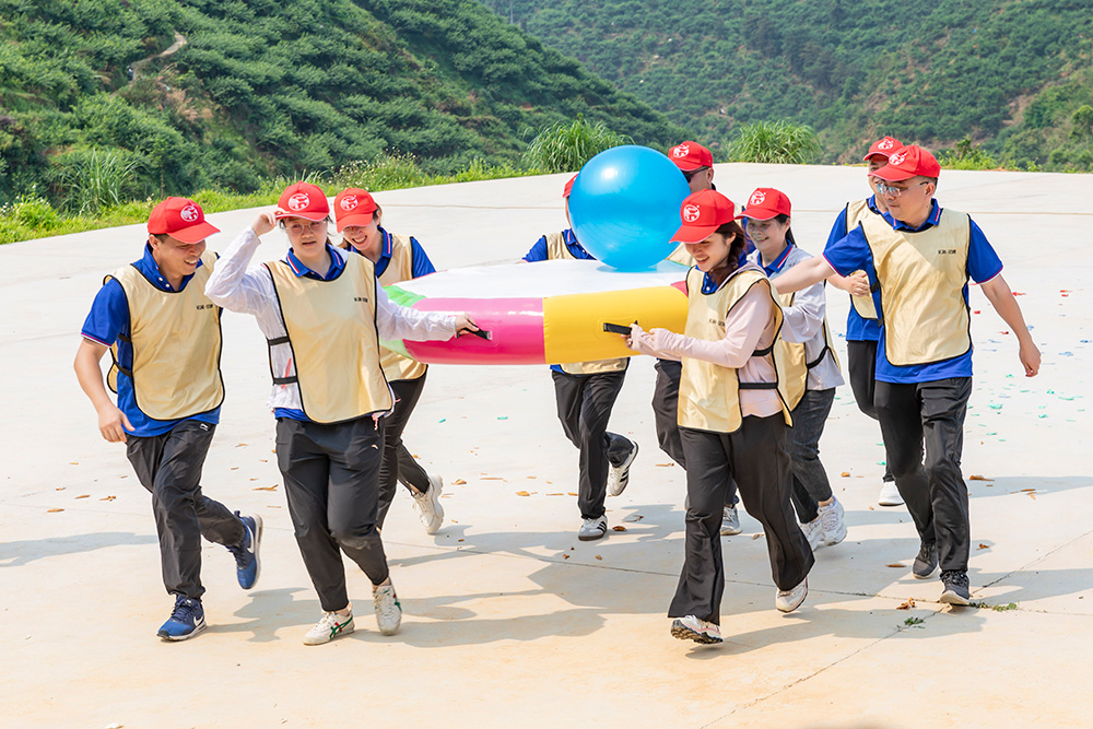 28日早晨8:00,陽(yáng)光似乎比我們更富有熱情。在一處三面被青澀三華李掛滿枝頭的果園環(huán)繞的山頂平坦場(chǎng)地上,趣味團(tuán)建拓展活動(dòng)便熱火朝天地開(kāi)展開(kāi)來(lái)。