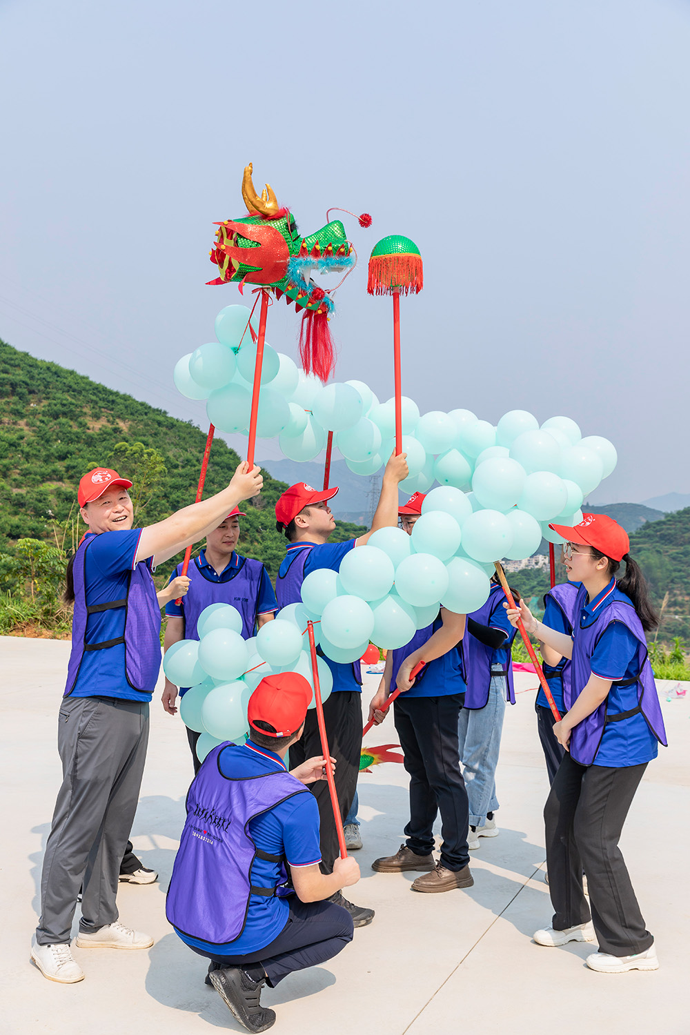龍騰盛世——用氣球吹扎龍身、用線繩連接長(zhǎng)龍、舞動(dòng)活絡(luò)龍身、濃墨點(diǎn)睛醒龍、五彩飛龍追逐盤(pán)旋……整體過(guò)程中,有指揮更有團(tuán)隊(duì)協(xié)作,有指導(dǎo)更多默契配合,將創(chuàng)新和創(chuàng)意融入活動(dòng)中,盡顯團(tuán)隊(duì)精神風(fēng)采。