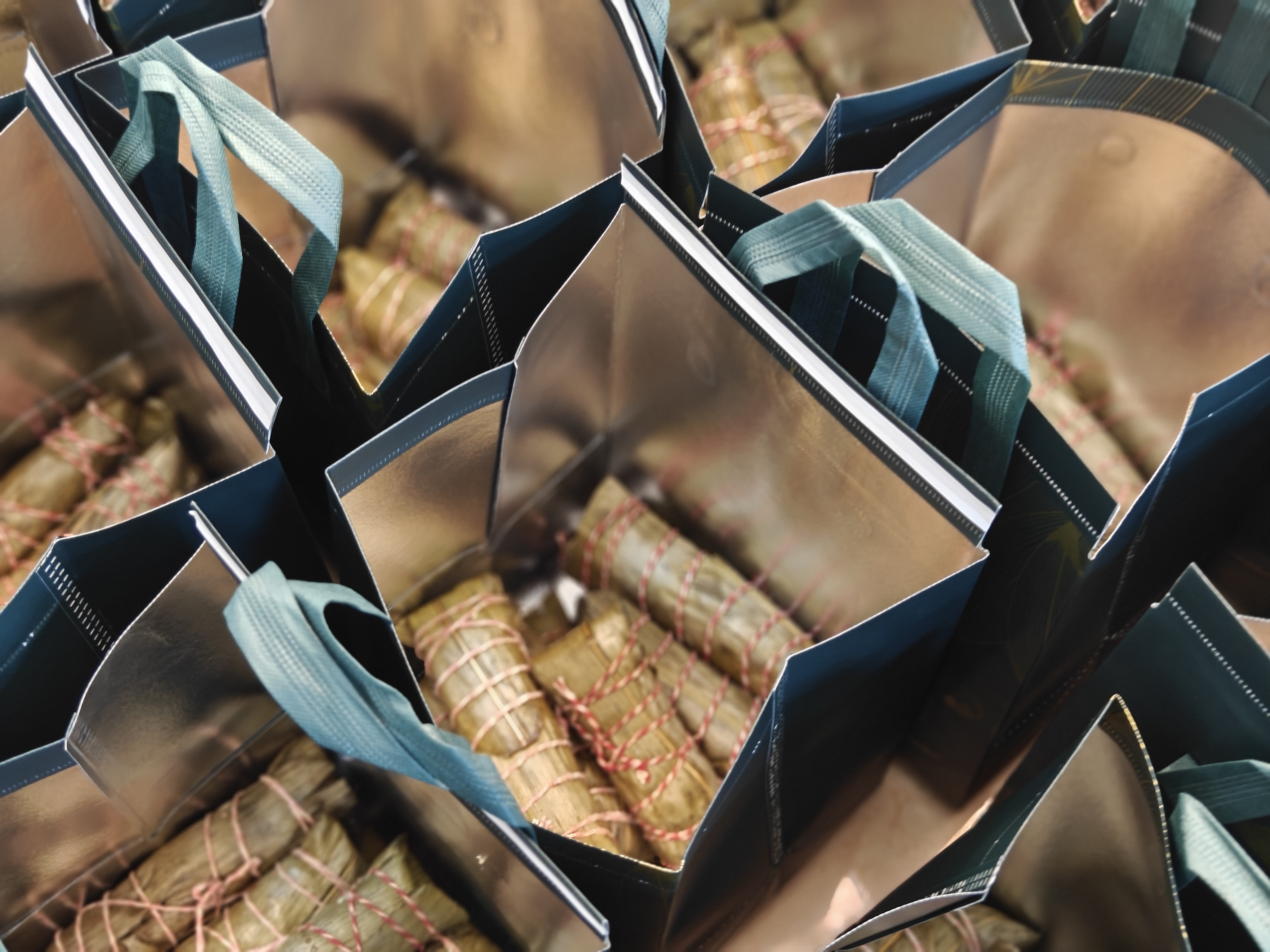 將蒸煮好的香粽自然放涼,然后如數(shù)打包、及時運送,將這出自員工之手、滿載祝福的端午香粽就傳遞到了每一位員工的手里。