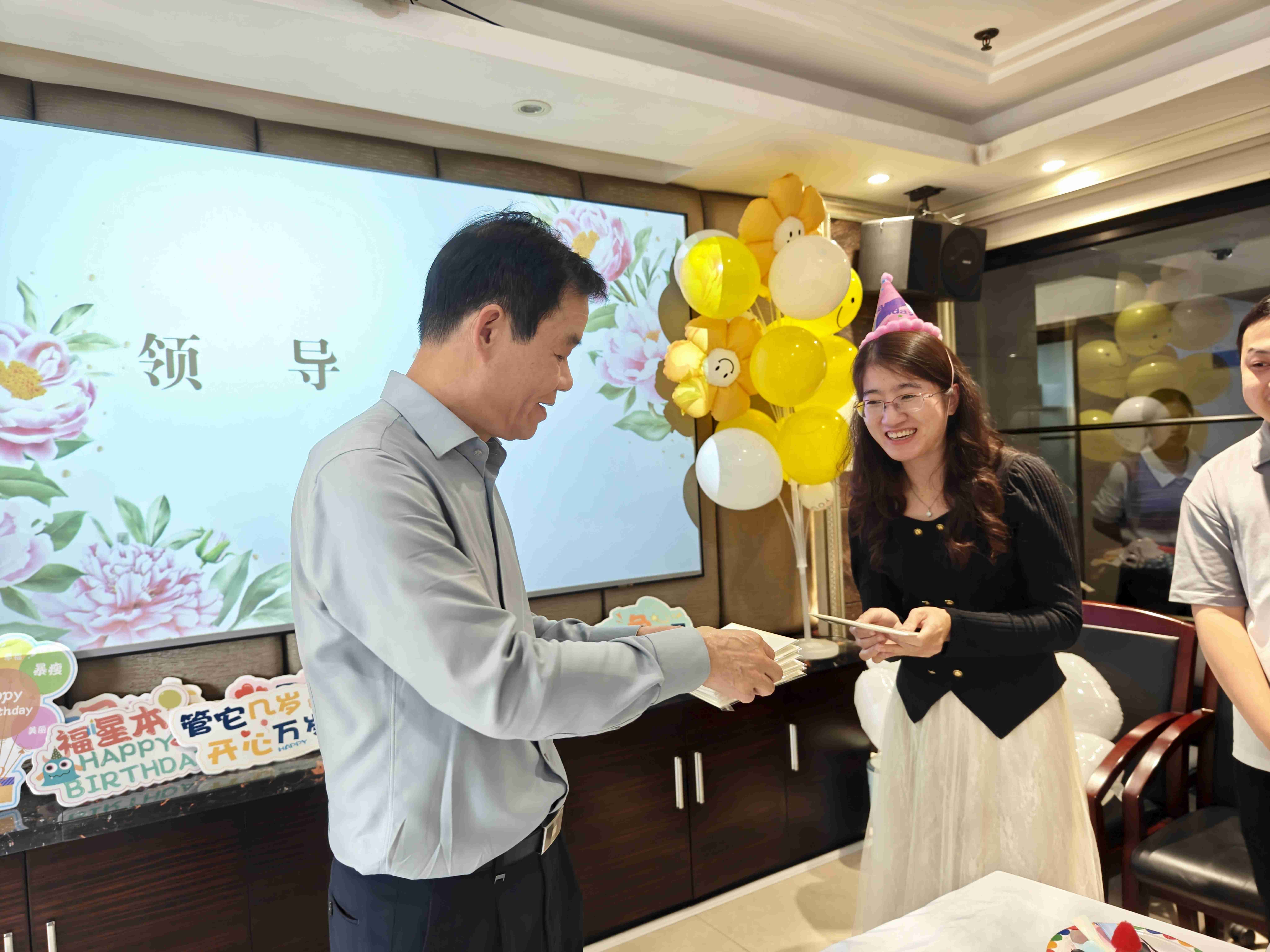 隨后,董事長(zhǎng)將一張張專(zhuān)屬的生日賀卡及生日蛋糕卡,親自贈(zèng)于每位壽星。