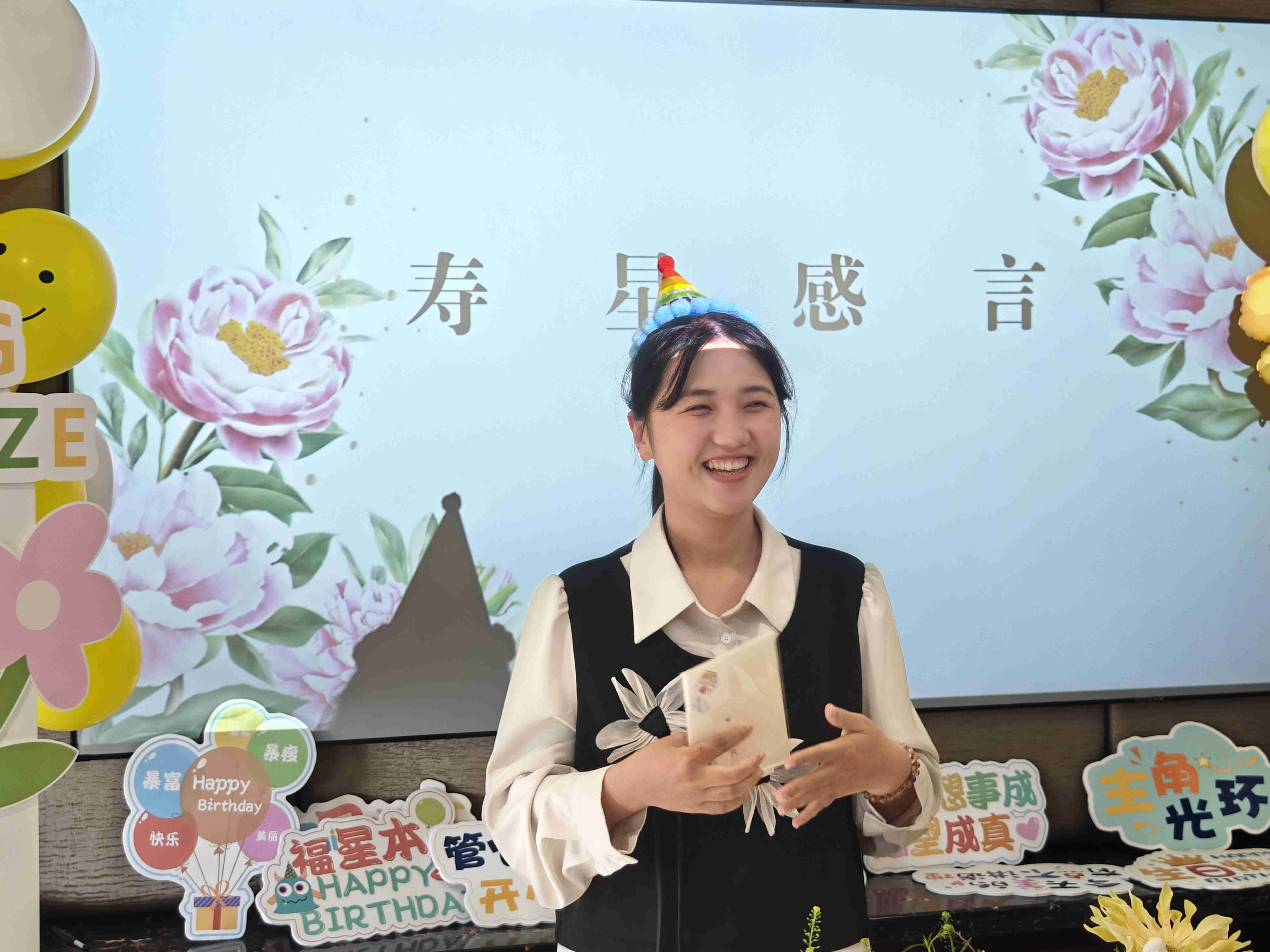 95后的副部長(zhǎng)馮鈺瀅朝氣蓬勃:“不論是自己的生日還是同事的生日,每一次的生日會(huì)都充滿(mǎn)了滿(mǎn)滿(mǎn)的溫馨和感動(dòng)、都充滿(mǎn)了歡聲笑語(yǔ)和美好祝福,讓生日的意義變得不凡、讓工作的動(dòng)力更足。真心感謝粵橋所給予我們的一切——機(jī)會(huì)、成長(zhǎng)、寬容、關(guān)懷和鼓勵(lì)。愿我們攜手同行,共創(chuàng)更多美好的回憶。”