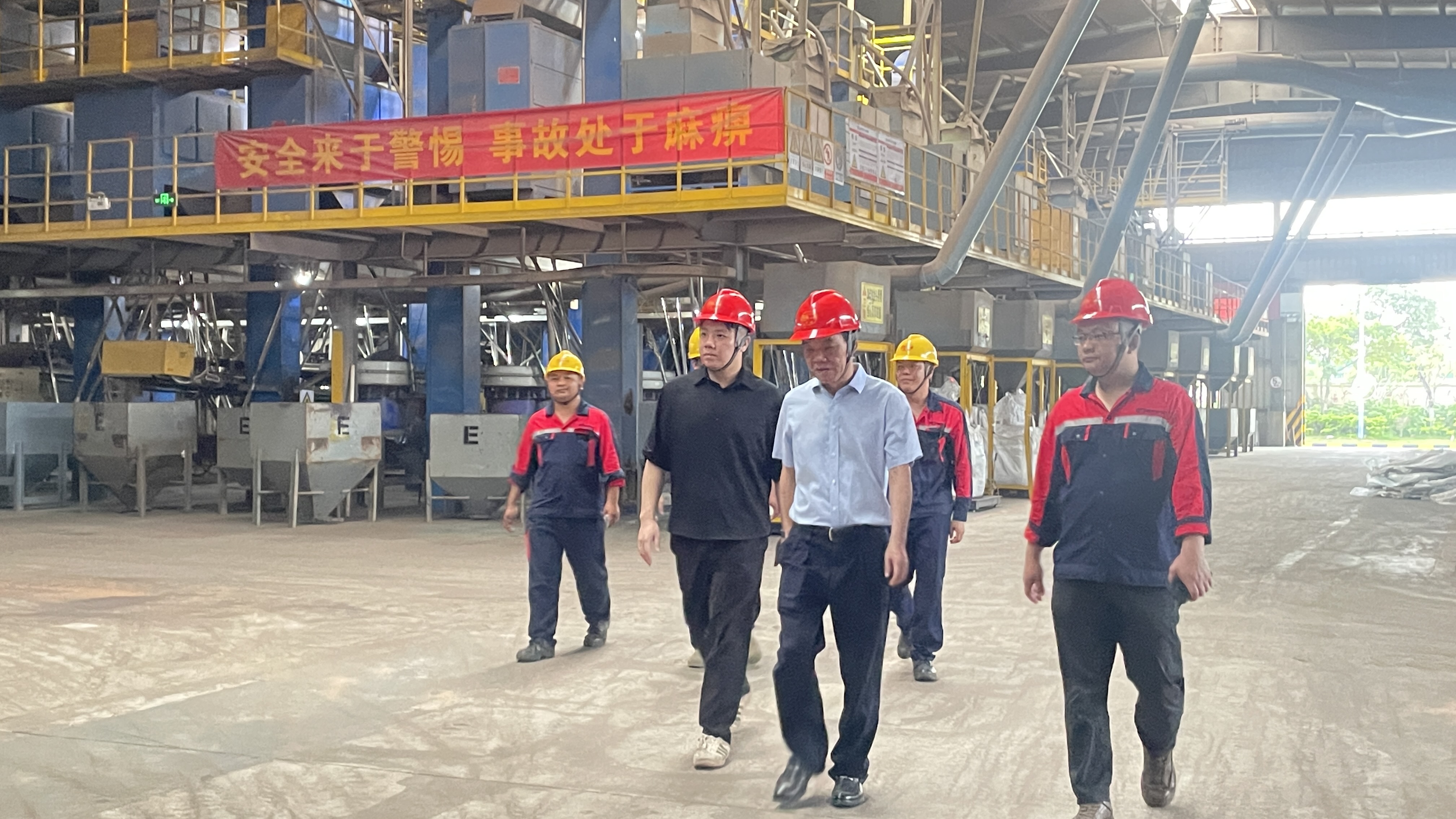 來(lái)到廣東粵橋高新廠,李董和副總裁李雨軒在常務(wù)副廠長(zhǎng)李健的陪同下,深入原料車間、生產(chǎn)車間、成品車間等關(guān)鍵區(qū)域,對(duì)設(shè)備運(yùn)行狀態(tài)、消防設(shè)施配備、?;饭芾砼e措等安全措施落實(shí)情況進(jìn)行全方位、精細(xì)化檢查。