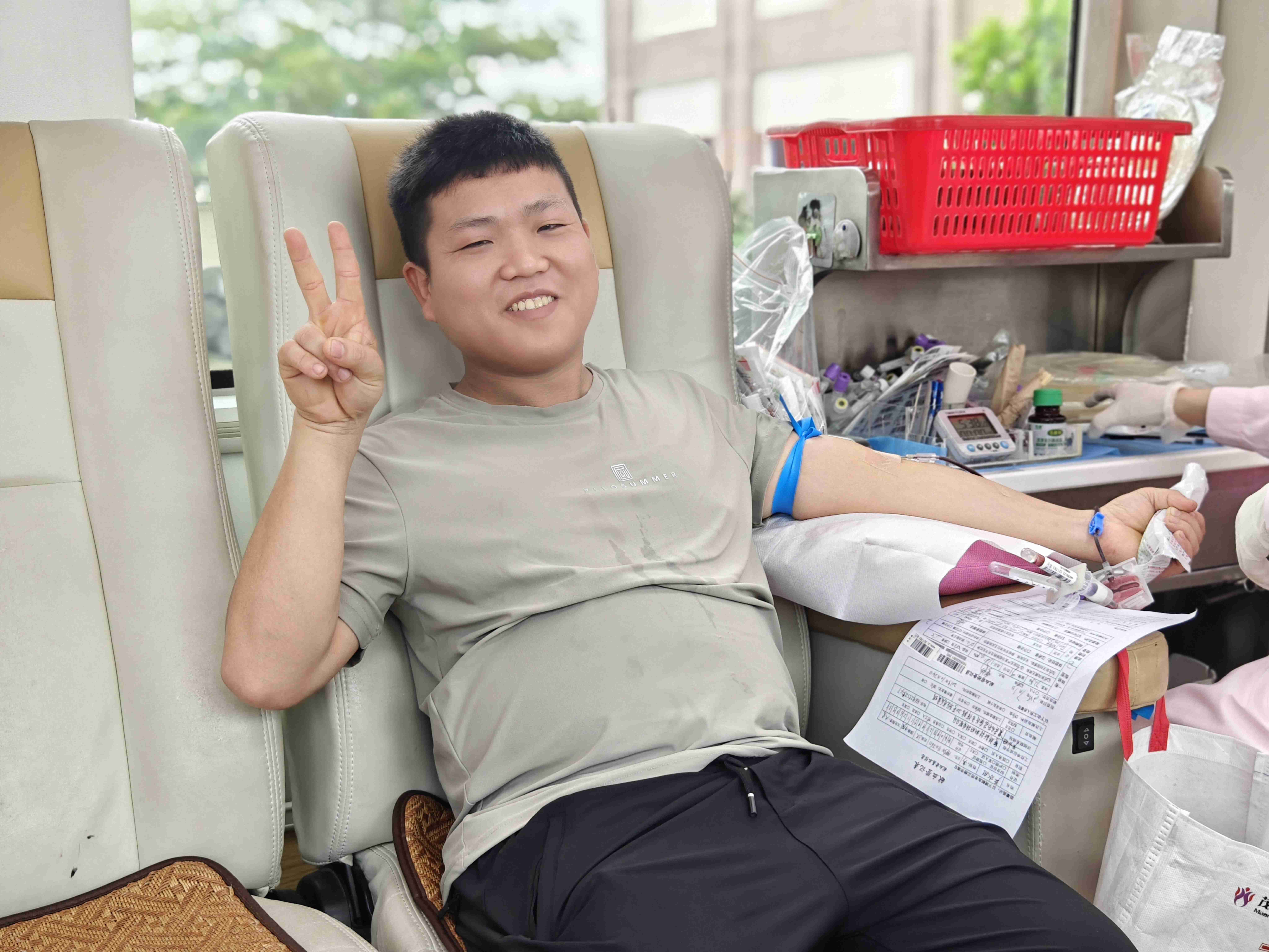 獻血現(xiàn)場,黨員帶頭、員工踴躍,既有多次獻血的“老將”,也有首次挽袖的“新兵”,填表、健康篩查、血型檢測、排隊等候、抽血、休息……所有流程都在醫(yī)護人員的指導下井然有序進行著,200cc、300cc、400cc,看著自己殷紅的血液通過輸血管不斷注入血漿袋,一種自豪的感覺油然溢滿全身!本次累計無償捐獻健康血液近12000ml!
