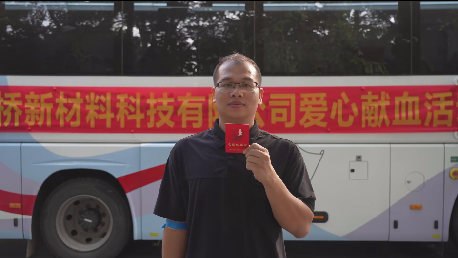 “無償獻(xiàn)血,利人利己……在此呼吁更多的社會愛心人士也能積極加入到無償獻(xiàn)血的行列中來,與我們一起奉獻(xiàn)愛心、傳遞溫暖、救死扶傷,共同助力和諧社會的發(fā)展。”粵橋新材行政綜合部部長莫竹青深情呼吁。