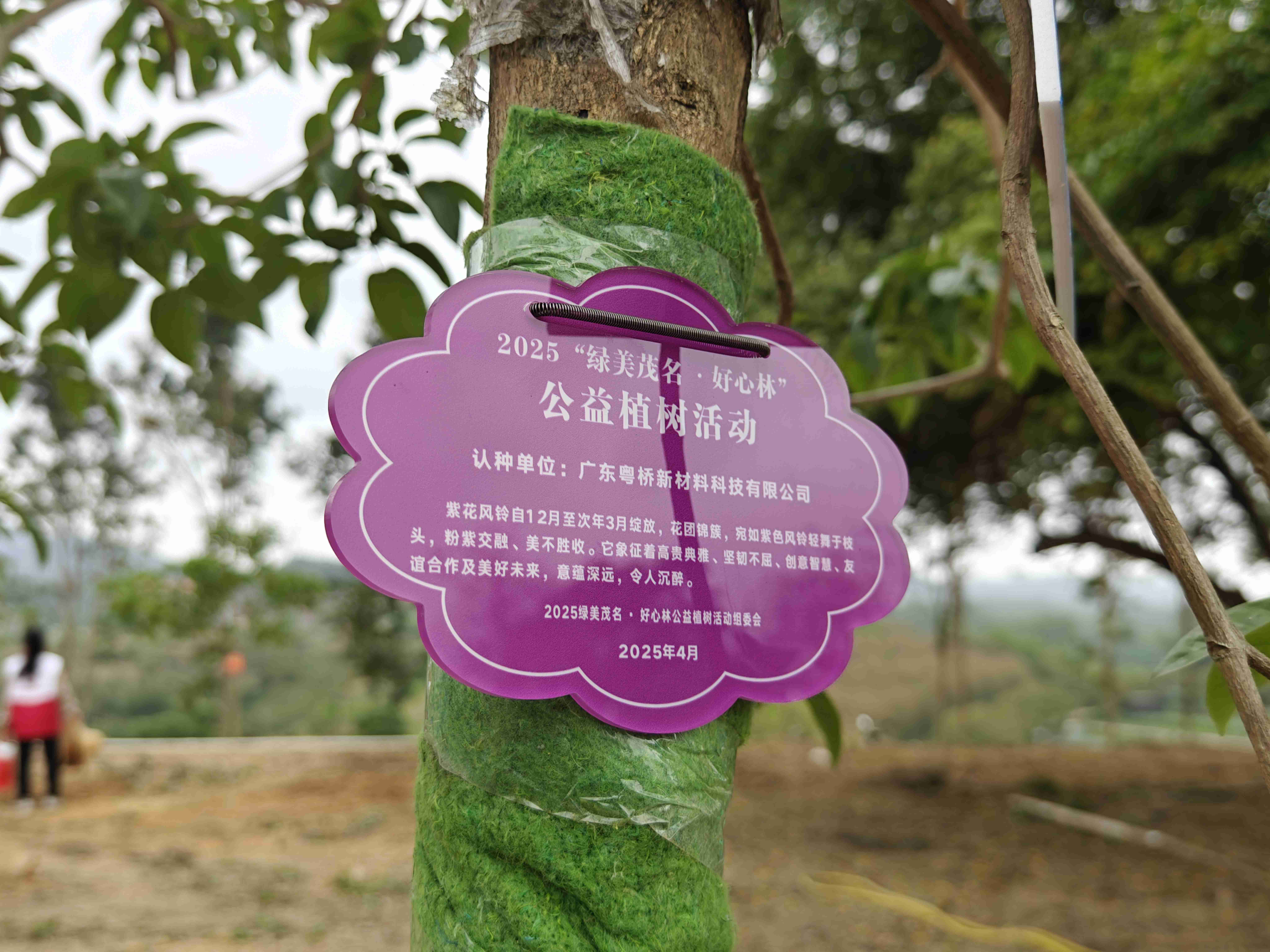▲ 合力種下紫花風鈴樹并掛上公益植樹認種銘牌