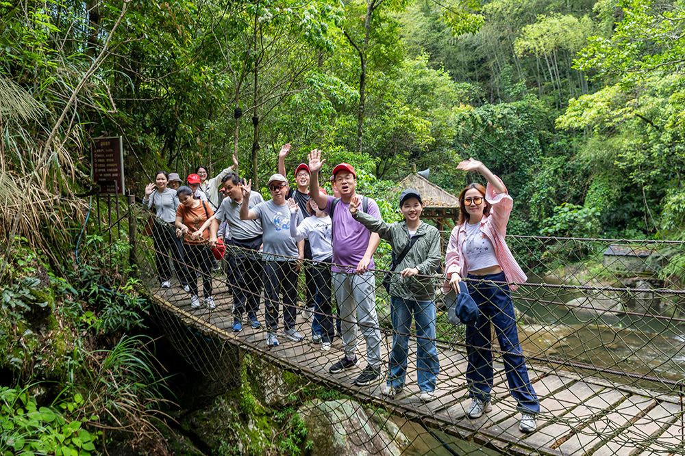 讓人稱贊不絕的“天外飛仙”表演、令人眼花繚亂的瀑布群、青翠欲滴的百畝竹海、旺盛的潘仙洞香火、刺激的空中漂流、驚險(xiǎn)的空中玻璃橋……在自由包圍和自我陶醉中,所有人拾級(jí)登山,感受著運(yùn)動(dòng)健身的快感、探索自然與人文的快樂(lè),身心得到了前所未有的放松。