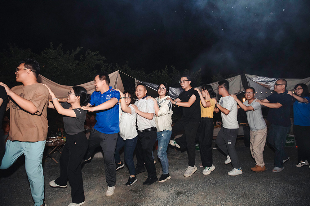 50人圍坐成一個(gè)圓圈雙手握緊棉繩,每個(gè)人按照教官的要求將上身后仰30度的同時(shí)奇跡出現(xiàn)了——原本柔軟的棉繩瞬間被扯拉蹬緊后變成一個(gè)堅(jiān)硬的鋼圈,是的,變成一個(gè)可以在繩圈水平面上走人的鋼圈!這就是集體協(xié)作的力量!所有人在聽(tīng)從教官指揮的過(guò)程中無(wú)不在內(nèi)心深處驚嘆、信服和認(rèn)同這一點(diǎn):“同心同力,能使繞指柔變百煉鋼!”這也是本次團(tuán)建活動(dòng)中所有人最大的收獲!