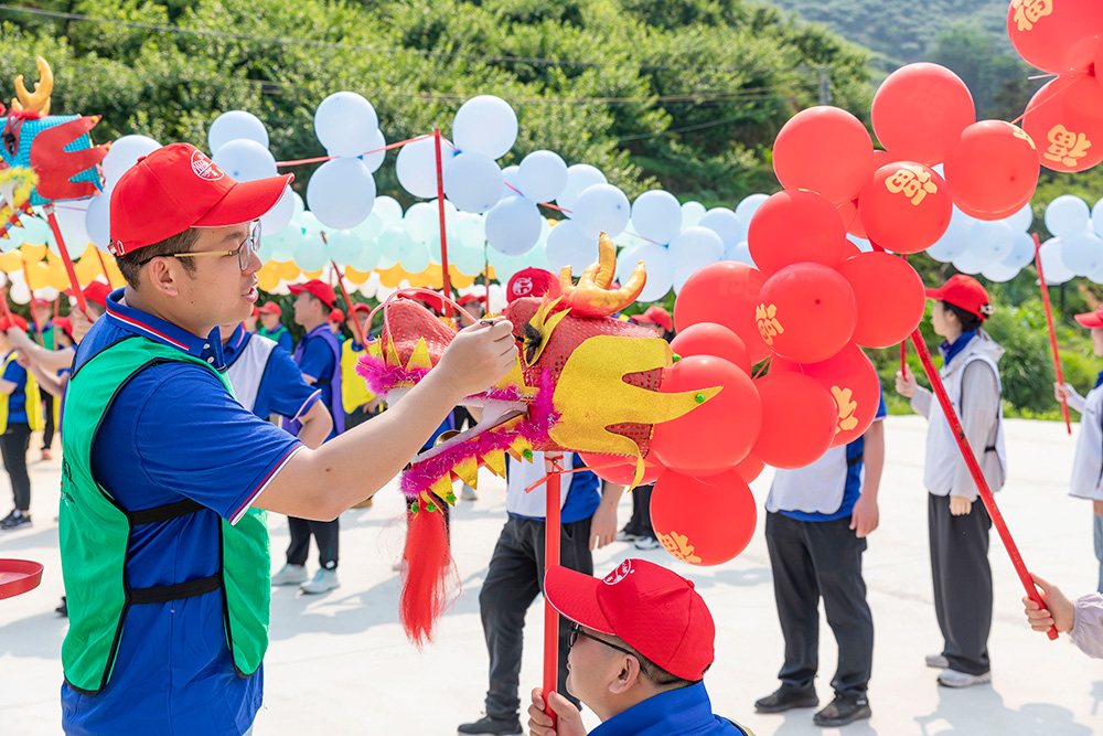 龍騰盛世——用氣球吹扎龍身、用線繩連接長(zhǎng)龍、舞動(dòng)活絡(luò)龍身、濃墨點(diǎn)睛醒龍、五彩飛龍追逐盤(pán)旋……整體過(guò)程中,有指揮更有團(tuán)隊(duì)協(xié)作,有指導(dǎo)更多默契配合,將創(chuàng)新和創(chuàng)意融入活動(dòng)中,盡顯團(tuán)隊(duì)精神風(fēng)采。