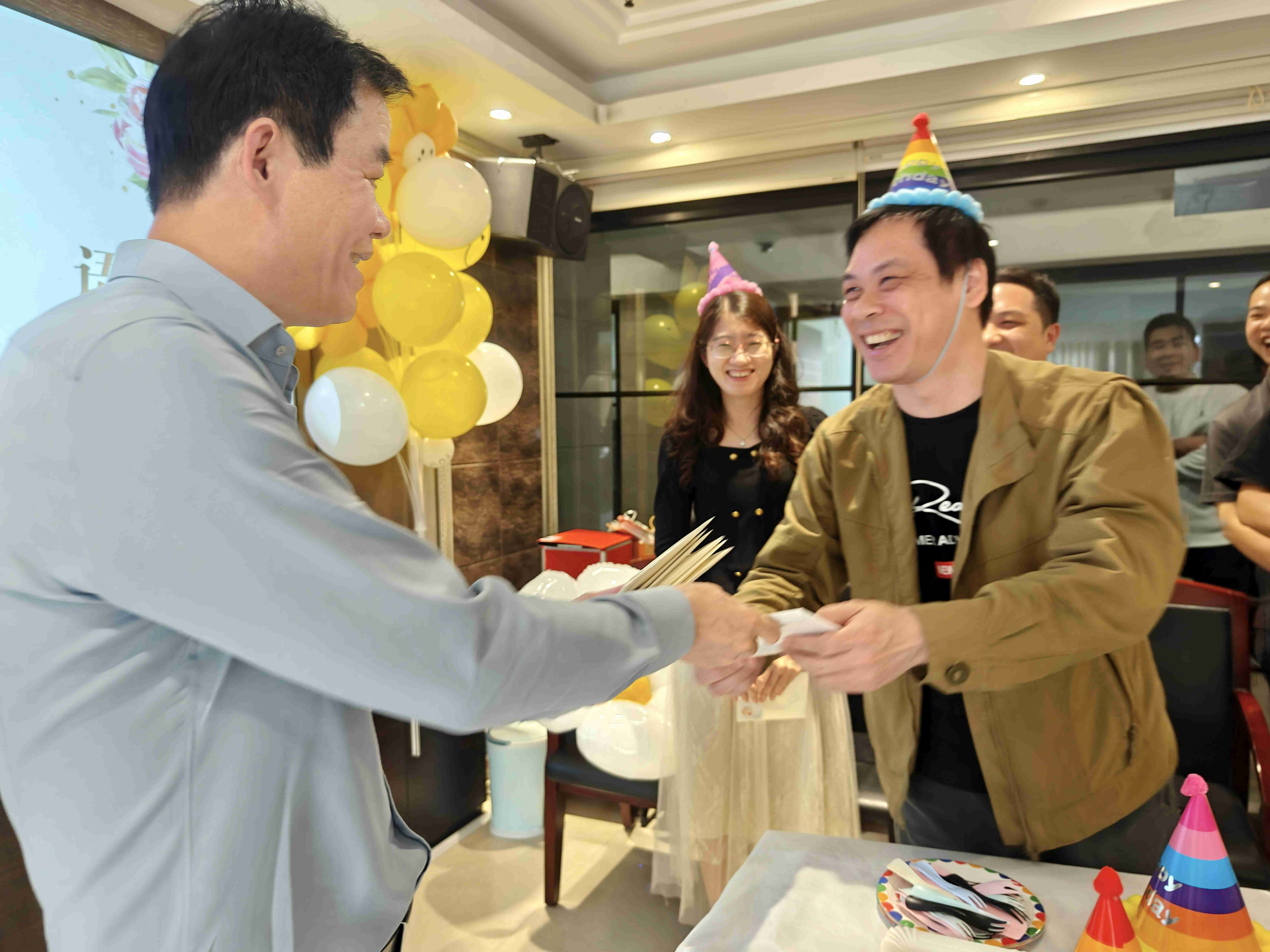 十分難得的是董事長(zhǎng)李呂華先生也親臨現(xiàn)場(chǎng)為本季度的壽星們送上祝福: “愿每位壽星都能如春花般絢爛、春柳般成長(zhǎng),家家和睦幸福,事事順意快樂(lè)”,并祝福公司所有員工:“在粵橋的大家庭里,我們一起進(jìn)步、一起奮斗,團(tuán)結(jié)友愛(ài)、相攜相助,共享生活的美好。”