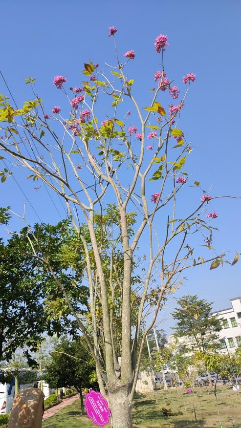 十分巧合的是,本次徒步節(jié)的行進路線正好經(jīng)過“粵橋好心林”——今年6月,粵橋公司積極參與茂名市2023“好心林”“碳匯林”公益植樹活動,贊助25萬元在金塘鎮(zhèn)譚屋椰子樹村旁植下的一片300多棵紫色風鈴樹林,被活動組委會命名為“粵橋好心林”。令人十分欣喜的是當日栽種下的小樹苗長勢喜人,有好幾株風鈴樹已開出艷麗的花兒。