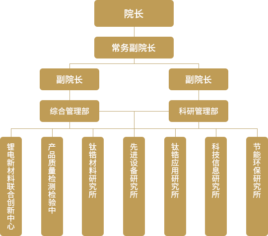 產(chǎn)品質(zhì)量檢測(cè)檢驗(yàn)中心、鋰電新材料聯(lián)合創(chuàng)新中心科研管理部、綜合管理部、鈦鋯材料研究所、先進(jìn)設(shè)備研究所、鈦鋯應(yīng)用研究所、科技信息研究所、節(jié)能環(huán)保研究所